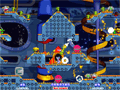 Snowy: Space Trip rockets the lovable bear across the galaxy to rescue small creatures from an army of mechanical thugs. Since he's far from the chilly peaks of his native land, Snowy can't pack his enemies in snow, but he can kick a variety of space junk into the automated brutes to send them reeling across the screen. When the coast is clear, Snowy must grab his new friends and return them to his spaceship to save the day.